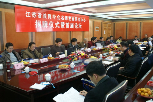 12月18日 下午,由江苏省教育学会和我校共同承办的江苏省教育学会名师发展研究中心揭牌仪式暨首届论坛在新世博宾馆会议隆重举行。江苏省教育学会会长周德藩和南通市教育局副局长王笑君共同为名师发展研究中心揭牌。