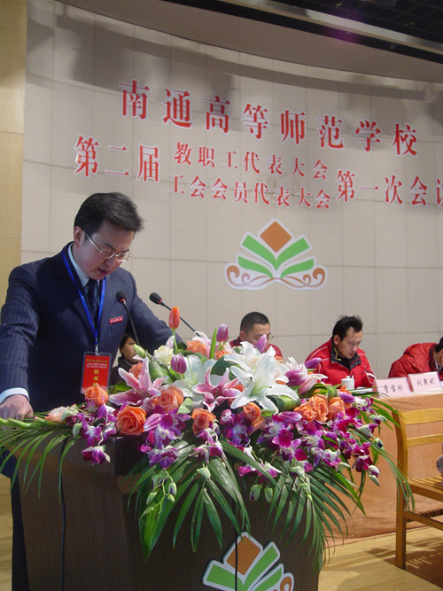 大会号召全校教职员工在学校党委、校长室的领导下,弘扬南通高师三业精神,紧扣十一五发展规划,凝神静思抓质量,一心一意谋发展,以积极的作为迎接高等教育大众化、办学类型综合化、小学师资本科化的挑战,再创百年师范新的百年辉煌!