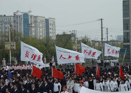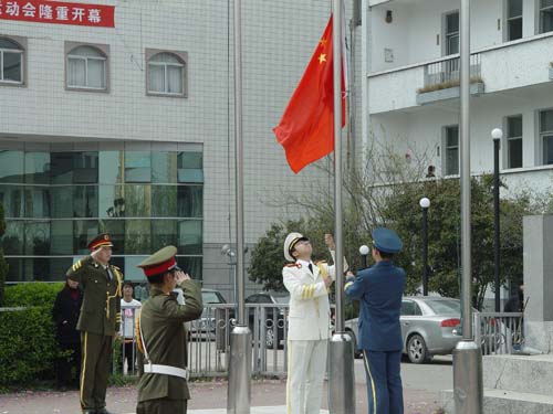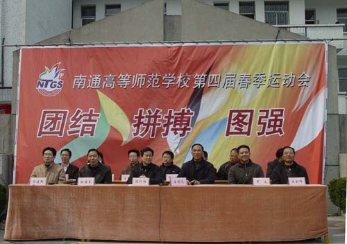 4月1日 下午,南通校区举行了隆重的春季运动会开幕式,由此,我校第四届春季运动会也拉开了帷幕。开幕式由孙国春副校长主持。伴随着雄赳赳气昂昂的运动会进行曲,国旗、校旗、第四届运动会会徽、军鼓队、彩旗队、各系精心编排的列队表演等相继入场,此时的校园显得格外热闹而美丽。随后,沈行恬副校长致开幕词;赵俊老师、蔡青同学分别代表裁判员和运动员宣誓;石俊元副校长宣布开幕。