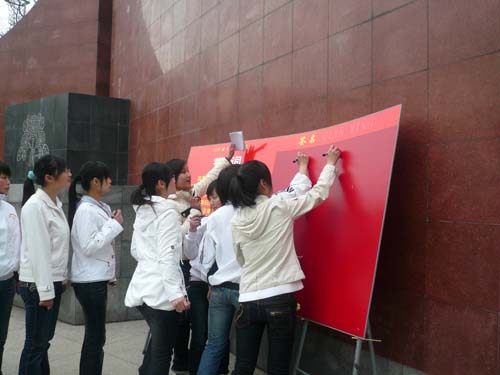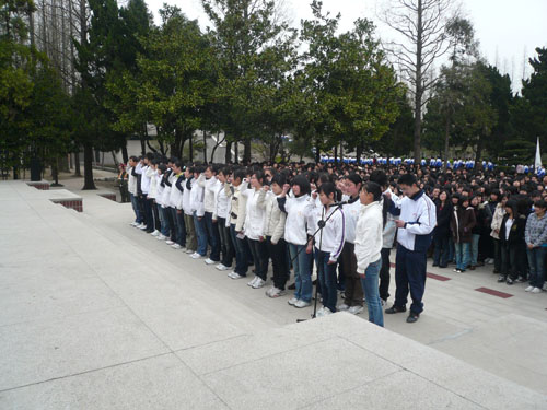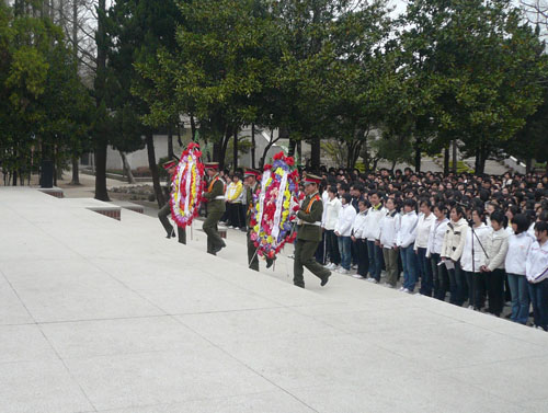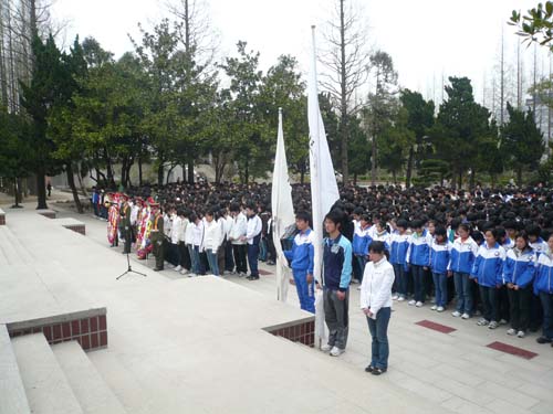 4月2日 下午,海门校区全体师生以及冠今中学高一年级的学生共1000余人在海门烈士陵园举行了以“实践青春诺言,肩负时代重任,建设和谐校园”为主题的清明祭扫暨十八岁成人宣誓活动。