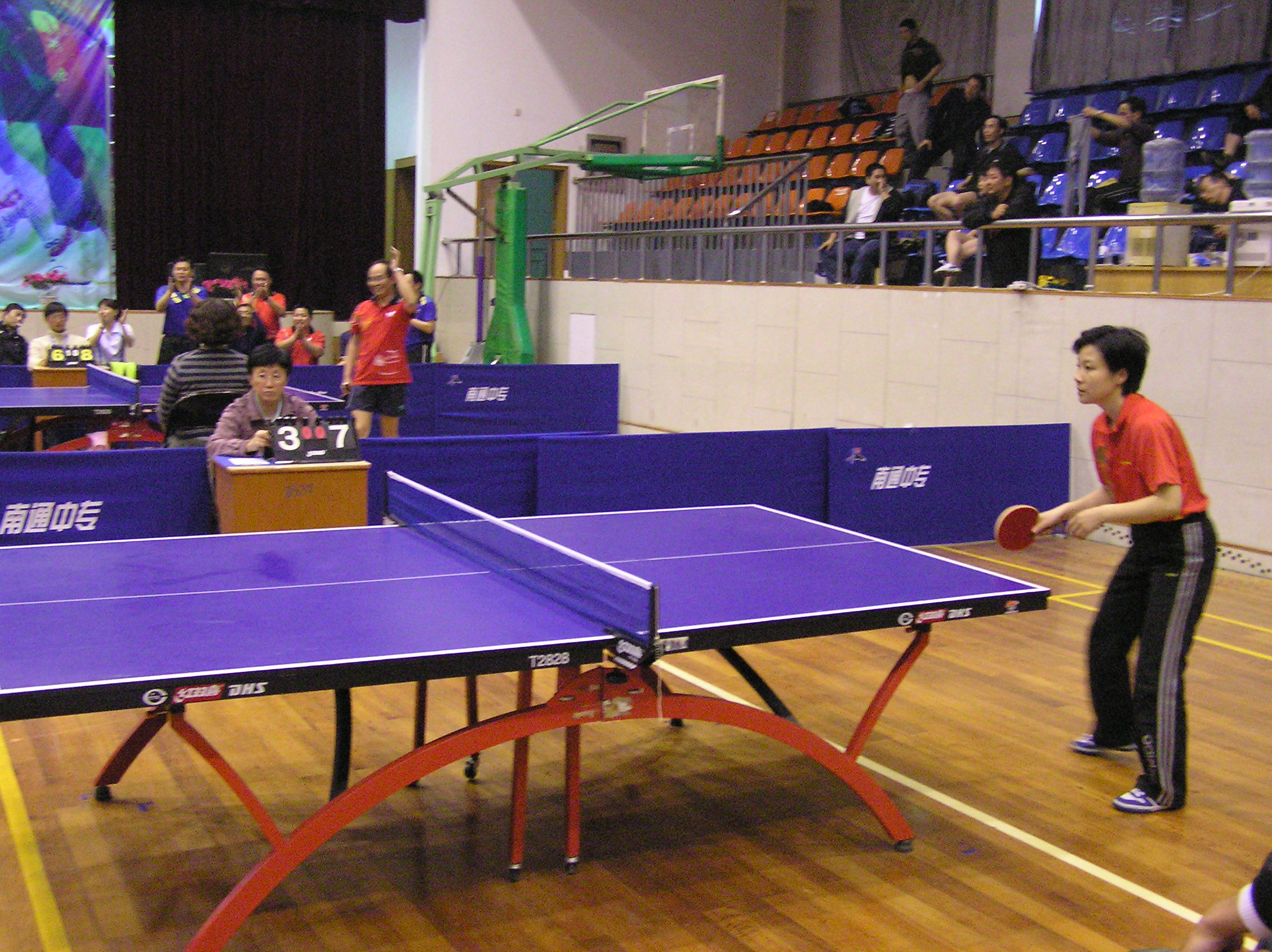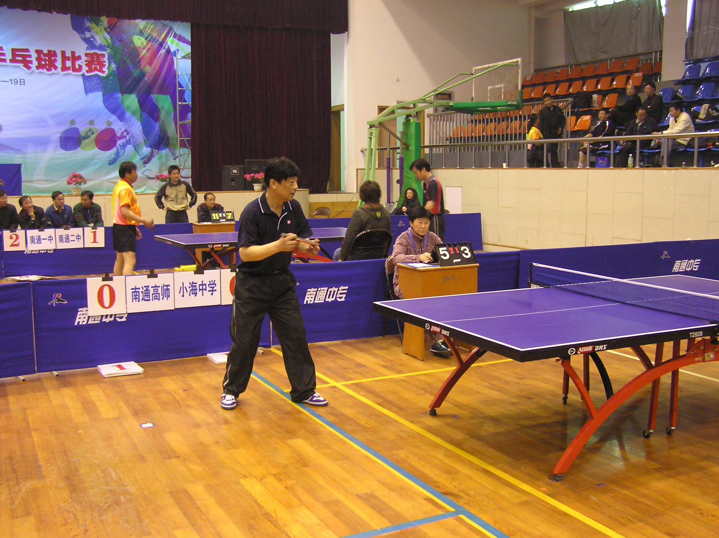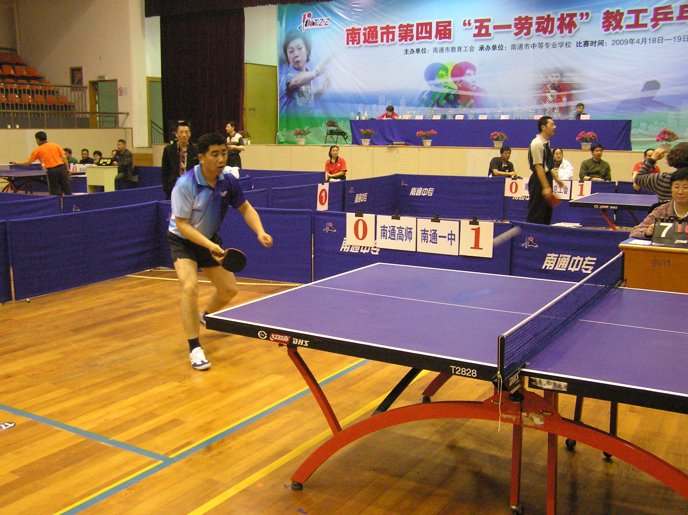 由南通市教育工会主办的第四届“五一劳动杯”乒乓球比赛,有来自市总工会和教育局直属学校等共20支代表队。比赛分甲、乙组进行,团体赛采用七场对抗赛,每场比赛五局三胜制。我校被分在甲组第一组,该组各代表队实力较强,小组比赛中,我校队员胆大心细、敢打敢拼,以小组第二名的成绩进入下一轮。
