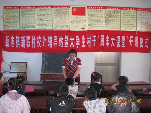去年7月田敏毕业后,顺利通过南通市委组织部的大学生村官招聘考试,成为一名大学生村官。参加工作后,田敏牵头组织筹划,联系学教育的镇机关公务员吴晓蓉、利群小学教师卢秋红(我校2008届毕业生)一起筹建了“周末大课堂”。她们发挥所学专业和技能,利用周末及节假日时间,借座村公共服务中心会议室,为留守儿童开展一些趣味性、知识性、文化性和创新性的兴趣培训、知识讲解等活动,让学生在轻松、自由的学习氛围中全方面发展,以配合学校教育,弥补家庭教育的不足。