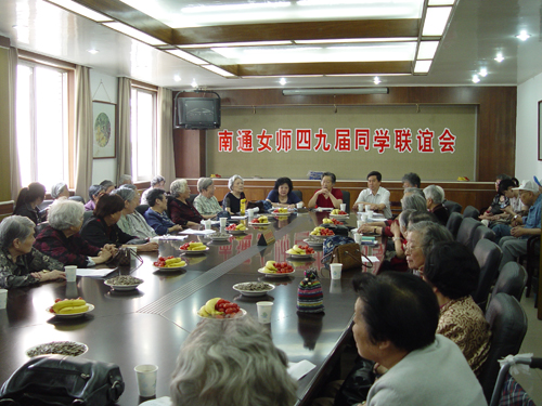 6月6日上午,我校原南通女子师范学校1949届38名老校友,分别从北京、上海、南京、苏州等地方返回母校举行同学联谊会。
