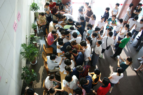 6月25日上午,我校2009年定向培养师范生招生面试与血检工作在南通校区顺利进行,来自启东、海门、如东、通州、崇川区、港闸区、开发区等地136名考生参加了面试与血检。市委教育工委书记、市教育局副局长黄建辉,及市教育局高教处处长王锦华等领导专程来我校督导巡视。