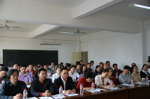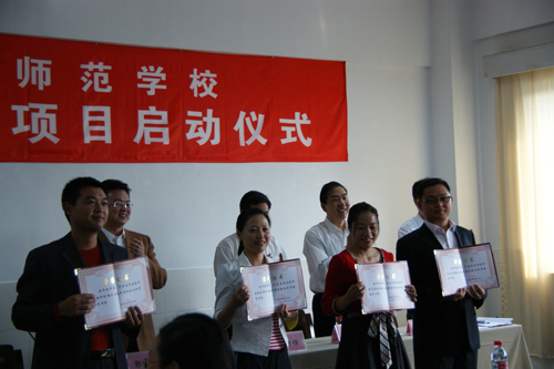 郭校长指出,作为百年师范的承继者,在师范教育本科化的趋势下,如何应对挑战,把握机遇?关键是抓好内涵发展,其核心工作就是教学建设;其过程虽然艰辛,但结果却很幸福,是利在当前、功在未来的头等大事,其意义不可限量。去年年底以来,学校策划的一系列教学建设制度设计,旨在为专业、课程建设和教师专业发展架构发展平台,改善激励机制,是优化办学模式、提高办学水平的重要举措。今天的项目启动仪式,标志着学校迈向本科化的新起点。为有效实施教学建设,切实保障项目质量,学校在做好制度保障和项目管理的同时,为首批立项项目提供充裕的经费资助;教务处要为在建项目和拟报项目提供技术咨询,做好跟踪检查和指导;专业系部要强化教学建设的责任和意识,要积极筹划、申报新项目,尤其要加强课程建设和专业团队建设;广大教师要进一步明确目标,专心治学,勤奋工作,勇于担当,努力成为专业发展的领先者。