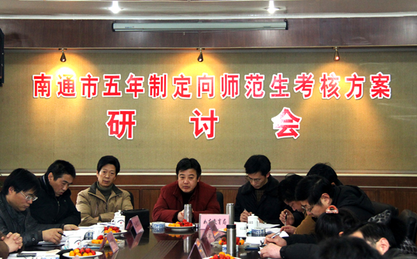 会议由市教育局高教处处长吉海波主持。潘健副校长首先对《方案》进行了解读,然后与会人员围绕《南通市五年制师范定向生考核方案》中考核的重要性、考核的内容和考核的办法以及其中的附件《南通市五年制师范定向生入职考核细则》等有关事项展开了热烈的讨论,对《方案》提出了许多建设性的意见。最后,市委教育工委书记、市教育局副局长黄建辉发表了讲话,他要求我校和如皋高师这两所承担五年制师范定向生培养的学校要在此次研讨会的基础上,认真修改、完善,早日定稿,市教育局将在春节后正式出台《南通市五年制师范定向生考核方案》。