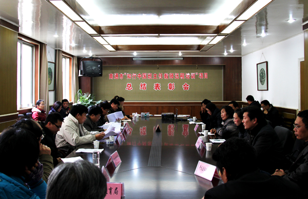 南通市知行中国项目负责人、南通高师培训处处长张国强同志在会议上代表市项目办作了题为“肩负国家责任,不辱历史使命”的项目工作总结。“知行中国”风范人物、中国教师研修网2009年度人物、海安县明道小学陈子峰老师,“知行中国”项目国家级优秀辅导教师、中国教师研修网2009年度人物、南通市实验小学顾燕老师以及“知行中国”江苏省优秀项目团队、南通市港闸区教育局吴育培同志先后代表全体参训学员、辅导教师和管理员、各县(市)区项目办在会上作了精彩发言。