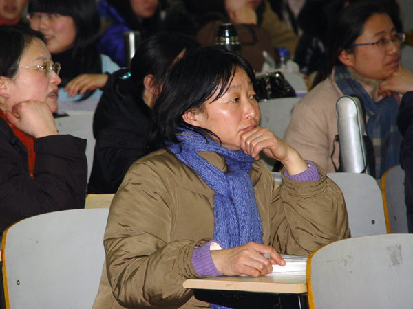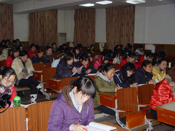 图书馆二楼的讲台上, 贾真 老师正在讲授教育心理学,以她一贯的沉稳教态娓娓而谈,学员们都被深深吸引住了。这个班是根据省、市教育局行政部门的相关要求,对申报教师资格认定的非师范类毕业人员且未达岗位资格要求的中学教师及社会人员进行教育学、教育心理学的课程补修培训。通过培训,让他们系统学习、掌握有关教育学、教育心理学等现代化教育的理论,并运用专业理论分析、诊断、评价实际教育活动,树立正确的教育观、活动观、课程观。学员们因为必须要参加省教育考试院组织的教育学、教育心理学的考试并取得相应合格证,所以特别认真。