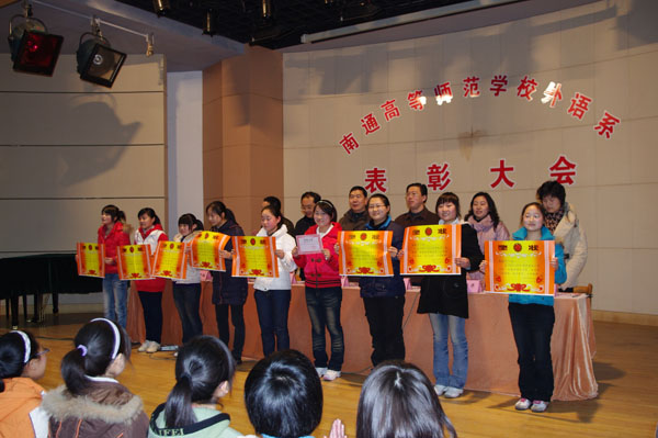 3月24日下午,外语系表彰大会在综合楼报告厅举行。出席大会的有副校长孙国春、教务处长吴剑峰、学工处长倪健及外语系的领导和老师。本次大会表彰了2009~2010学年度第一学期取得佳绩的集体和个人。