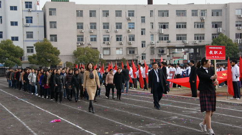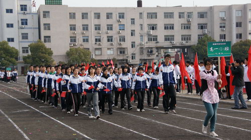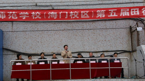 4月8日上午七点二十分,我校海门校区田径场上红旗招展、人潮涌动、热闹非凡。伴随着雄壮、欢快的运动员进行曲,国旗队、彩旗队、裁判员队、各代表队迈着矫健的步伐,精神饱满地依次通过大会主席台。至此我校第五届田径运动会由此拉开帷幕。