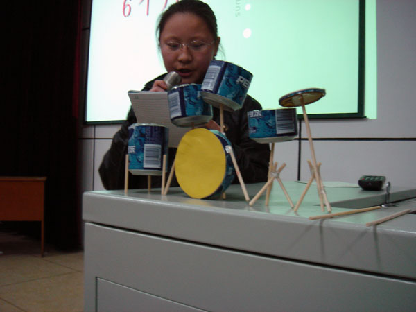 此次比赛要求每班派出5名同学限时20分钟,现场做出参赛作品,再由其中一名同学为作品讲解,最后由评委老师和同学打出分数。本次比赛由07英语6班获得一等奖。