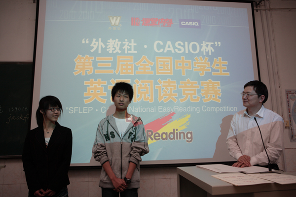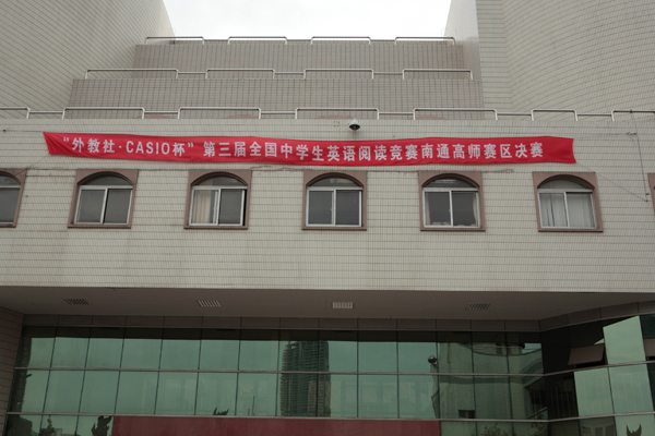 5月16日 “外教社·CASIO杯” 第三届全国中学生英语阅读竞赛江苏省分赛区决赛在我校如期举行。在四月份上万人参加的初赛中,江苏共有40名选手脱颖而出,分别参加了本次初中组和高中组的决赛。本次比赛分笔试、口试两个环节。比赛规范有序;选手们备赛认真;送考的老师家长们高度重视。在比赛结束后,评委们进行了精彩点评;颁奖后,晋级总决赛的4位选手纷纷发表了获奖感言,介绍了自己英语学习的经验。我校共有三名选手进入高中组的决赛,其中07英语(2)班的张宇雯同学以综合总分第一名的好成绩成功晋级总决赛。07英语(1)班的张玉钰同学取得口试单项第一名的好成绩。所有选手获得的奖状和奖品均由卡西欧,上海外语教育出版社和课堂内外杂志共同提供。无论比赛过程,还是留影纪念都让来自江苏省的选手和他们的带队老师,送考家长们在美丽的南通高师校园留下了难忘又美好的回忆。