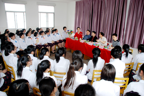 9点40分开始,全体领导、来宾在报告厅饶有兴趣地观看了题为 “孩子的春天”的动态展示。南通市教育局局长缪建新首先致辞,他代表教育局对各位领导、来宾的莅临表示了欢迎,对本次活动的价值表达了期许。随后,定向生们在“飞来的花瓣”、“成长的摇篮”、“孩子的春天”、“明天的太阳”四个篇章中现场展示了书写、朗诵、绘画、演唱、舞蹈等各项职业技能。领导们对定向生应该掌握的古诗和英语名篇进行了现场背诵抽测,并现场命题让定向生进行了即兴演讲。感人的讲述、甜美的歌声、轻盈的舞姿、精致的作品、生动的视频……叙说了定向生们成长的故事和长成的喜悦。看着演出,著名儿童教育家、中国教育学会副会长李吉林老师流下了激动的泪水,她说:“看着同学们青春的舞姿、歌声和笑脸,仿佛看到了五十年前在通师校园的我。”她坚信爱能产生智慧,产生力量,勉励同学们要始终不渝地把整个身心献给儿童。李老师还说,通师是她的母校,对通师她有着深厚的情结,她感谢母校和母校的老师,也希望所有的定向生永远不要忘记母校,不要忘记为自己辛勤付出的老师们。