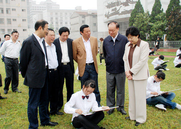 上午8点30分,领导们专程听取了我校党委书记、校长郭毅浩关于学校改革和发展、定向生培养情况的工作汇报。王湛部长发表讲话,他盛赞了南通定向培养师范生的培养工作,对我校此次活动的开展表示祝贺。他认为,师范生免费定向培养工作的重启,不是制度的回归,而是螺旋式的上升,体现出政府在教育改革与发展的过程中承担了更多的责任。他还说,职业技能的汇报是南通高师的强项,从翻阅的材料来看,此次的汇报必将十分精彩;目前,南通高师在定向生全面、系统的培养过程中已经取得了可喜的成绩,应在以后的培养过程中产生更多的先进经验。