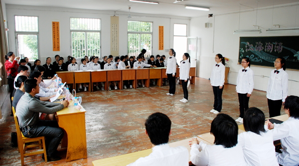 下午1点30分,定向生们分县(市)区进行了汇报。定向生们向生源所在地的教育行政部门领导、小学校长代表展示了个人发展的优长,接受了他们的检查抽测,听取了他们的希望和要求。最后,南通市委教育工委书记黄建辉主持召开了“南通市师范生定向培养工作研讨会”,会上,各县(市)区教育行政部门领导、小学校长代表交流了观摩感受,并对两所高师定向生的培养试点工作进行了肯定,提出了建议。