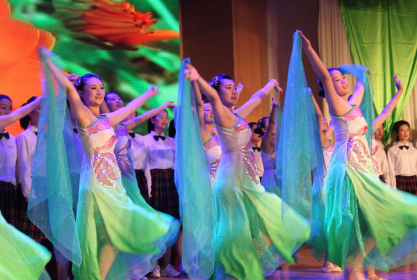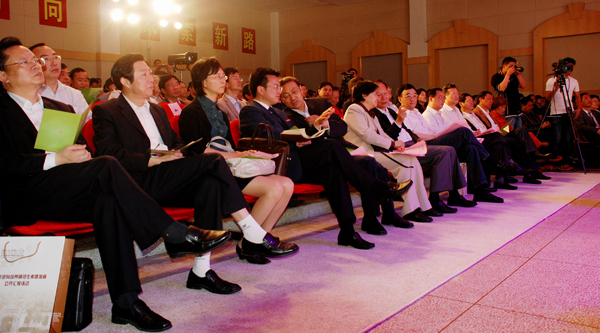 动态表演结束后,南通市委常委、宣传部长张小平和江苏省教育厅副厅长杨湘宁分别作了热情洋溢的讲话。张部长说:“与2008年5月第一次来南通高师观看定向生素质汇报相比,我欣喜地看到同学们明显增添了一份成熟与稳健,我们为同学们展现出的扎实的职业功底和向上的精神风貌感到欣慰,你们灵巧的双手、智慧的头脑和热爱儿童、钟情教育的美好心灵都给我们留下了深刻的印象。”同时,她也希望两所高师的教职员工,秉承百年师范优良传统,以定向培养师范生试点为契机,继续坚持师范教育方向,坚持服务基础教育,在教学、管理、科研上不断突破创新,努力提升办学规格,提高教育质量;希望定向师范生们树立崇高的职业理想和坚定的职业信念,勤奋学习,踏实做人,早日成就学业,回报社会,不负党和政府以及家乡人民的厚望。杨厅长谈及了他在南通高师校园里的印象,他说多才多艺的同学让他感受颇深,从同学的身上他看到了积极向上的精神,从同学的眼神里他看到了自信。他认为,定向生们在高师校园里享受到了真正的素质教育,相信这群学生一定会成为在基础教育领域成功实施素质教育的重要师资力量。