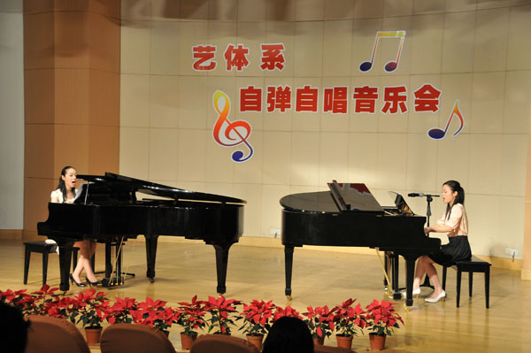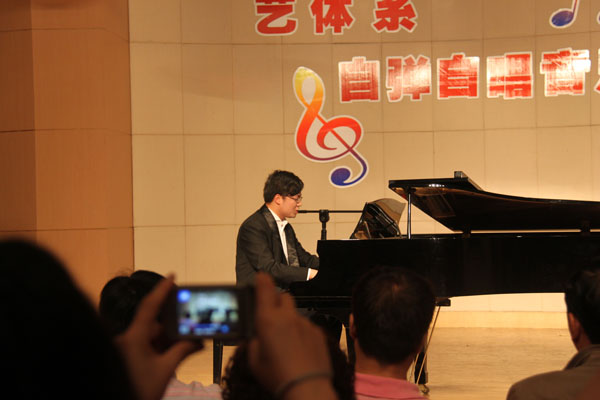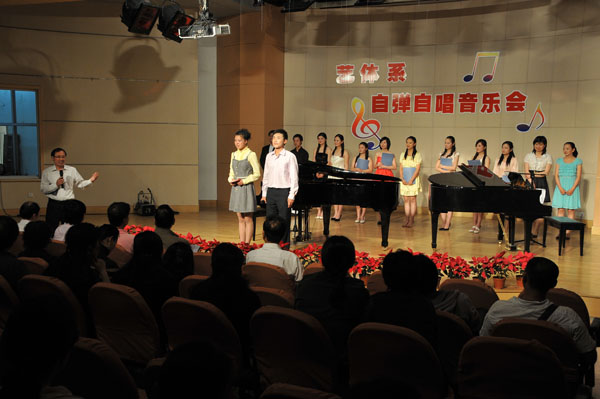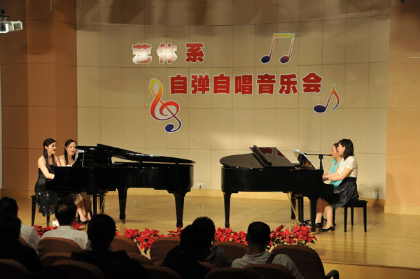 会后,各位代表在综合楼四楼报告厅观摩了艺体系自弹自唱音乐会。音乐专业的同学们表演了14首中外名曲,全方位、多角度地展示了我校弹唱教学的成果,获得了与会代表的高度赞扬。