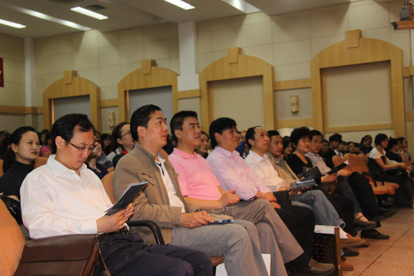研讨会上,郭毅浩校长首先介绍了我校的办学理念及学科、专业发展的方向,艺体系黄忠副主任重点介绍了我校在弹唱教学上的成果及经验。随后,与会各位代表进行了热烈的研讨。