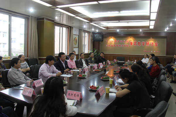 6月11日 ,江苏教育学院分院、江苏省高等师范学校弹唱教学研讨会在我校召开。江苏省12所高师的音乐教师代表参加会议,江苏教育学院音乐系主任马小歌、副主任周振亚应邀到现场指导。分院音乐协助组成员也全部到会。