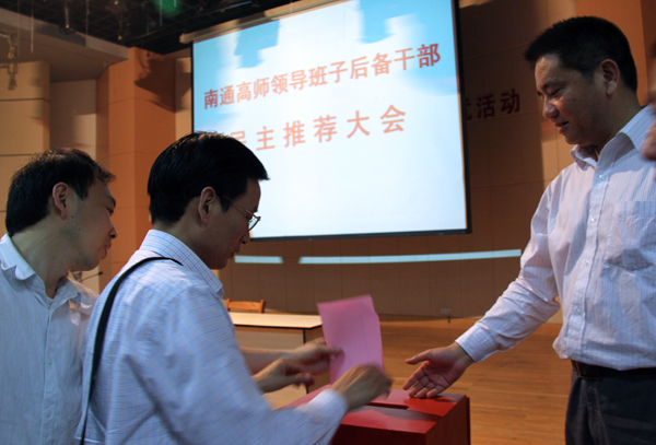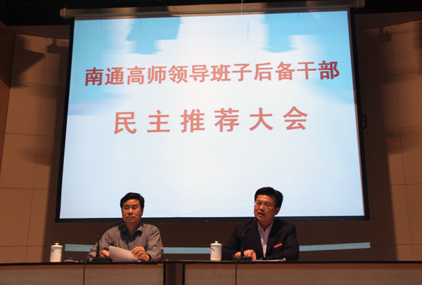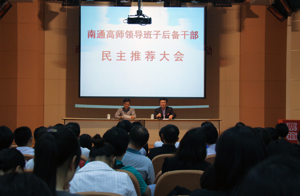 根据市委组织部、市教育局党组的部署和要求,6月11日下午,南通高等师范学校召开领导班子后备干部民主推荐大会,举行学校领导班子后备干部首轮民主推荐。学校领导班子成员、中层干部、党员和教职工代表参加了民主推荐大会。
