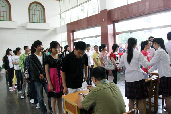 6月26日上午,我校举行2010年师范定向生招生面试。来自各县(市)区达到定向生面试分数线的127名考生,参加了朗读、书写、做操、身高测量等项目的面试。