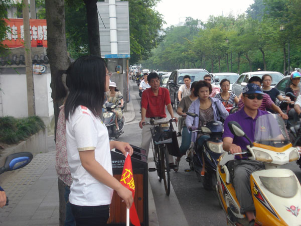 7月1日至21日,我校团委联合四个系学生会主要干部,骨干成员,在濠南路口、学田路口、西公园路口开展了为期近一个月的交通协管志愿活动。