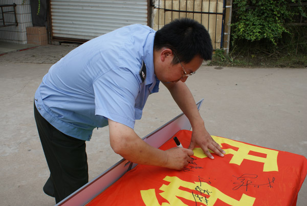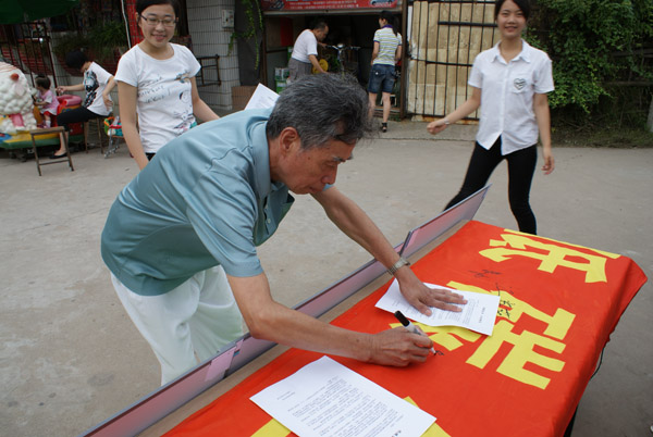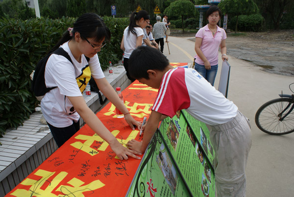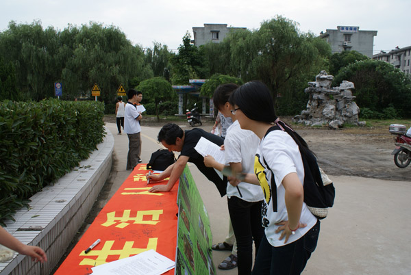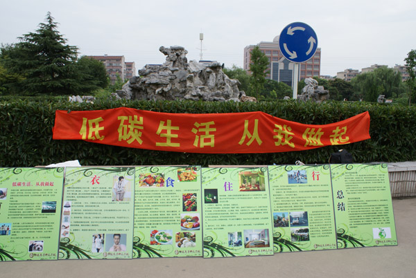 考虑到早晨学田公园锻炼的人比较多,正是宣传低碳环保的好时候,所有同学早早的来到指定地集中,带着事先准备好的低碳环保宣传材料,一条横幅和六块展板来到学田公园。为了让大家更好地了解低碳生活的意义,展板内容分别从衣、食、住、行等方面作了具体介绍,将低碳生活作为一种生活态度,引导公众养成绿色生态的生活方式。同学们向过往行人发放自己制作的低碳环保宣传材料,并和小区居民谈起关于低碳生活的理念,大家表示认同这样生活的理念,也表示会支持这样的环保宣传工作,很多人并在横幅上签上了自己的名字来表示支持。