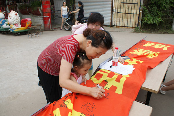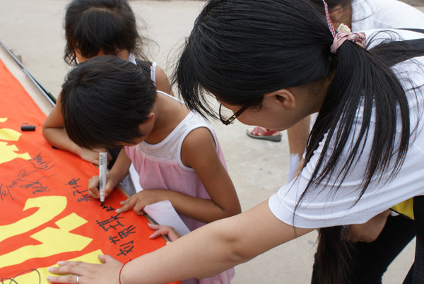 对于这次活动,我队6名成员都投入了百分之百的热情和努力。活动前,每个成员都分配了相应的任务,包括社区的联系,场地的安排,活动材料的准备以及和孩子们的联系。大家都希望能给参加活动的孩子们一个有意义的一天,给家长们放心的一天。在炎热的夏天为和谐的小区生活带来缕缕清风。