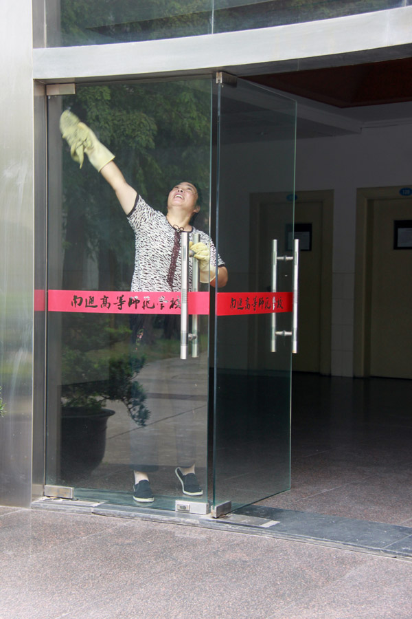 8月25日,后勤处的全体成员就已正式上班,有的负责电路维修,有的负责水泵调试,有的负责荷花池的清理,有的负责全校的卫生打扫,有的负责草坪的整修……,校园里呈现出一派忙碌而有序的景象。