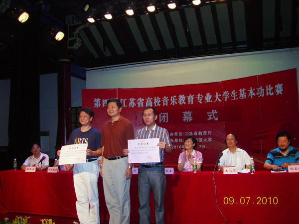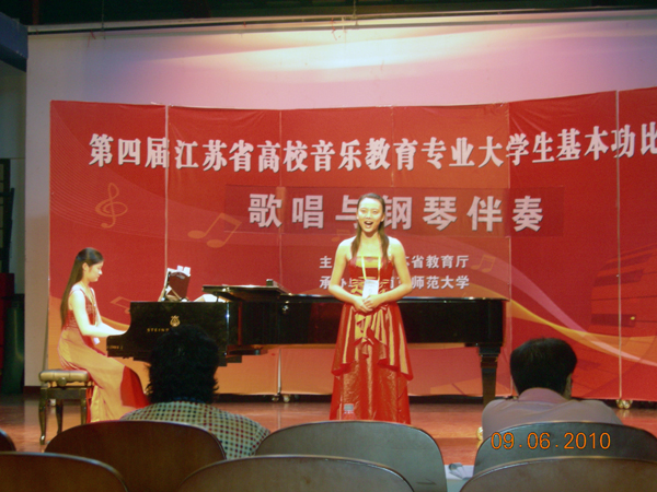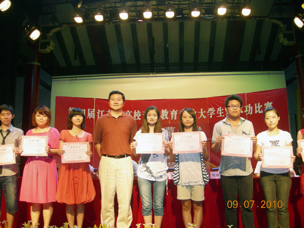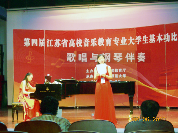 在第四届江苏省高校音乐教育专业大学生基本功比赛中,我校代表队荣获专科组团体冠军,林怡心、浦译文同学在此次比赛中分获专科组全能第一、二名,黄忠等老师荣获“优秀指导老师”奖。