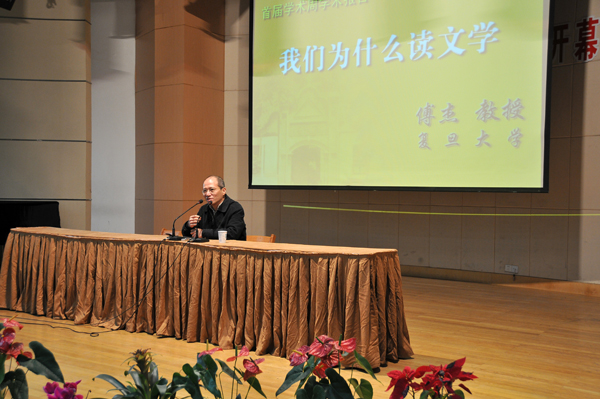 简短而隆重的开幕式之后,著名学者、上海复旦大学中文系傅杰 教授向与会师生作了题为《我们为什么读文学》的学术报告。傅杰 教授师从王元化教授,治中国语言学史、中国学术史,著述丰硕,学养深厚。傅杰教授的报告生动晓畅,深入浅出,受到与会师生的热烈欢迎和好评。