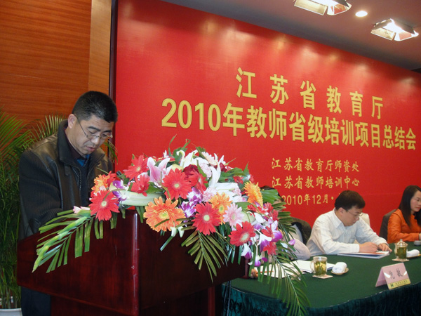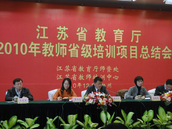 12月16日, “江苏省教育厅2010年教师省级培训项目总结会”在扬州召开。出席会议的对象有各市、县(市、区)教育局师资(人事)处(科)长、各省级教师培训基地主要负责人、各县(市、区)教师培训机构(教师进修学校)负责人、省教师培训中心教师研修基地学校负责人等。会议的主要内容有:1、全面总结2010年教师省级培训项目工作,交流各市、县(市、区)、各培训机构落实今年培训工作的经验;2、省教育厅师资处领导谈“十二五”教师培训工作规划和2011年工作计划。四家单位在会上作了大会交流,我校培训处徐汝成处长代表省级培训基地作了“2010年全省小学数学骨干教师省级培训南通市培训工作汇报”发言,集中介绍了南通高等师范学校培训基地举办暑期小学数学骨干教师省级培训的三点成功经验,即高水平的专家讲座,高质量的交流活动,高标准的管理与服务。受到与会领导的充分肯定,引起同行、专家的强烈共鸣。