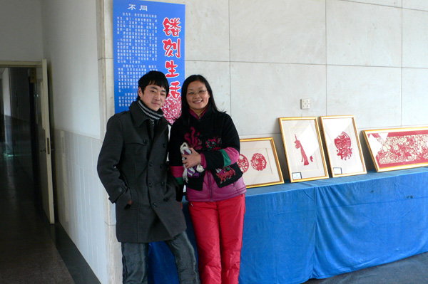 12月27日 至元月3日,人文系小教文科(1)班许魏在综合楼门厅举办了个人剪纸艺术作品展,共展出了其22幅剪纸作品。