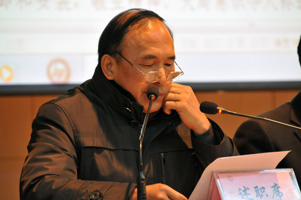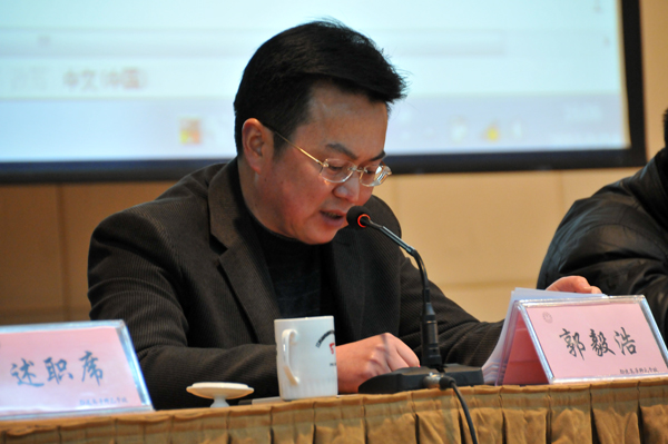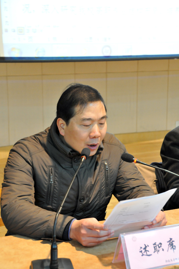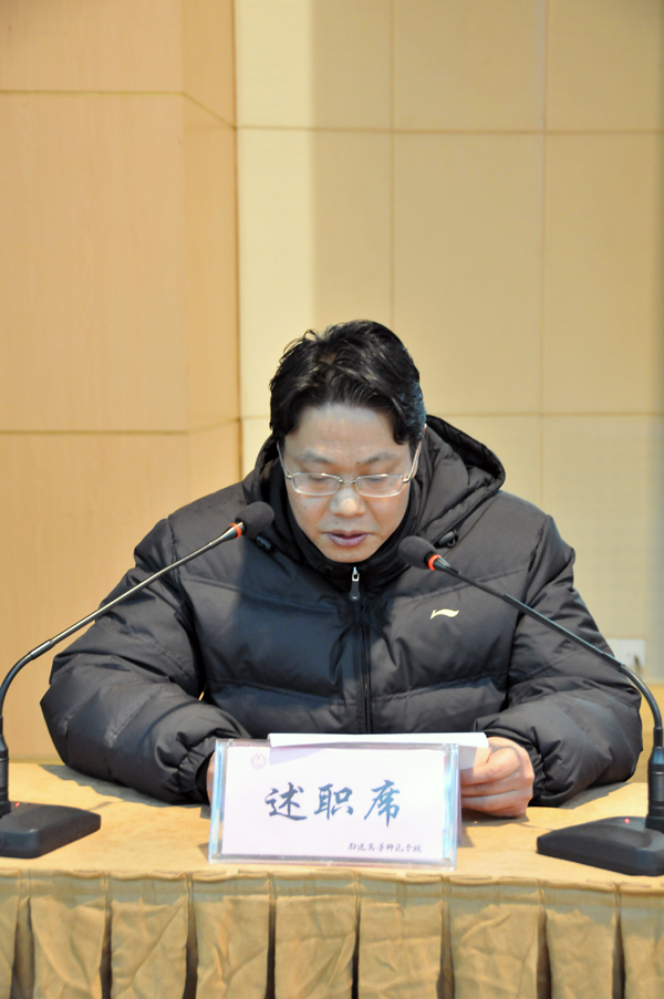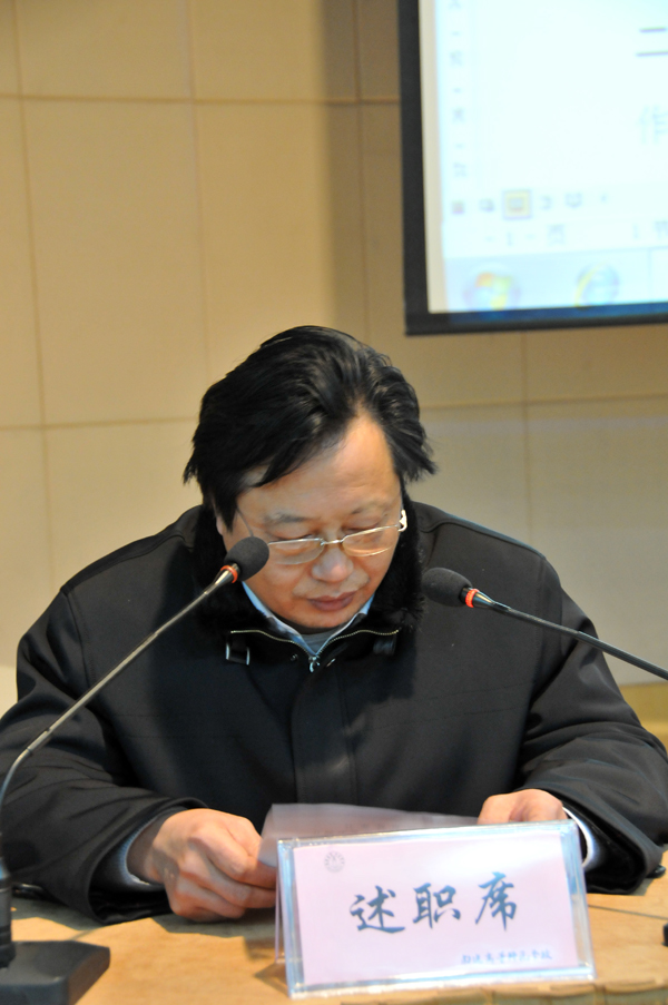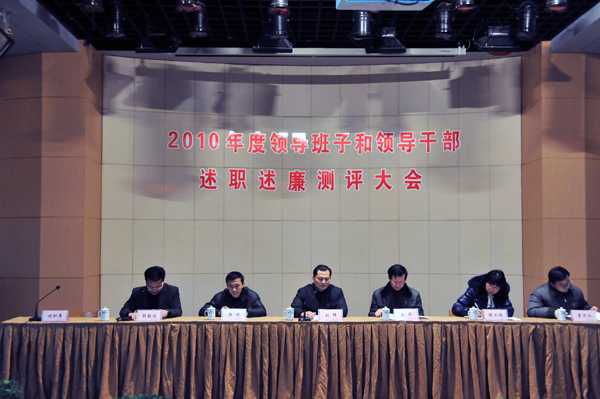 1月14日下午,我校举行2010年度市管领导班子和领导干部述职、测评大会。我校中层以上干部、民主党派负责人、学校教职工代表、离退休人员代表70多人参加了会议。首先郭毅浩校长代表领导班子述职并作了个人述职述廉报告,接着石俊元、陈情、潘健、孙国春等校领导分别对其在2010年德、能、勤、廉、安方面的工作情况向大家作了报告。根据文件要求,沈行恬和都樾同志年度不作口头述职,作书面述职。