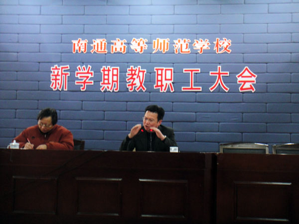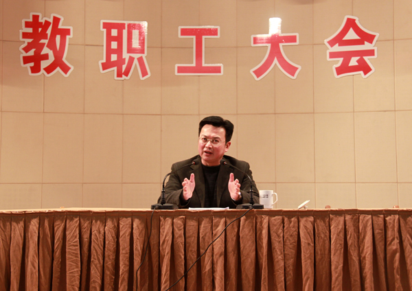 郭校长重点从体制创新、学前教育专业建设、学科建设、生源规模控制与对策、关注教职工的事业与生活等五个方面具体阐述了我校2010年几项重点工作的政策背景、发展趋势和工作思路。他还与全体教职工就如何处理好“想与做”、“内与外”、“现实与愿景”、“兴己与兴校”、“律己与律人”等关系共勉了其中工作和生活思考。