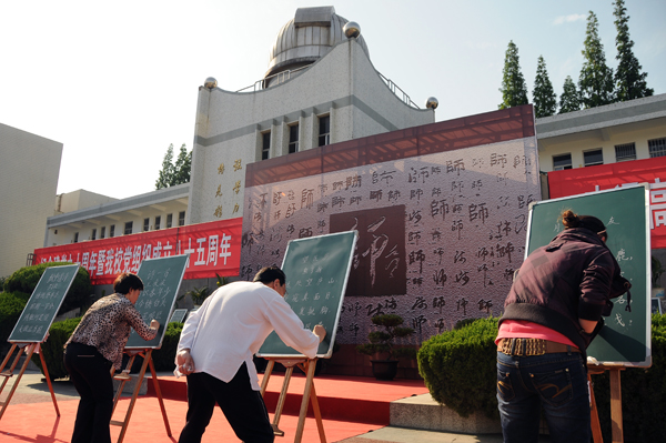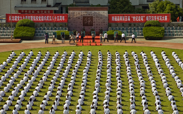 为了庆祝建党90周年和我校建立党组织85周年,进一步落实第二批省级语言文字规范化示范校的创建工作,也为了检查我校预科段师范生的技能训练情况,强化全校师生的职业情意和职业技能,5月13日下午,我校组织500多名师范生在南通校区操场举行了第五届“世纪走笔”规范汉字现场书写比赛。