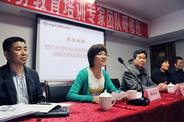 5月26日,由南通市中小学教师研修中心举办的“2011年江苏省义务教育小学语文培训专家团队研修班”正式开班,这期培训班是江苏省2011年省级重点培训班,学员来自无锡、镇江、泰州、南通、连云港五市,共62位专家老师,培训目标任务是“通过培训,打造一支高质量的专家团队,为各市义务教育教师全员培训和校本研修提供专业支持”。下午在南通市萃景会所举行了简短的开班典礼,典礼由南通市中小学教师研修中心办公室主任、我校培训处处长徐汝成主持,校领导沈行恬致欢迎辞,原南通市小学教师培训中心主任王建维进行了研修方案解读,泰州市高港教研室王树妹老师代表学员作了表态性发言,最后南通市教育局师资处副处长韩永琴发表讲话,她阐述了新形势下教师培训工作的重要性,特别指出,教育发展是国家发展的重要战略,而教师发展又是教育发展的重要战略,希望老师们加强学习、积极交流,切实提高学习质量,努力成为小学语文的培训专家,为承担各地的教师全员培训和校本研修任务作好充分准备。