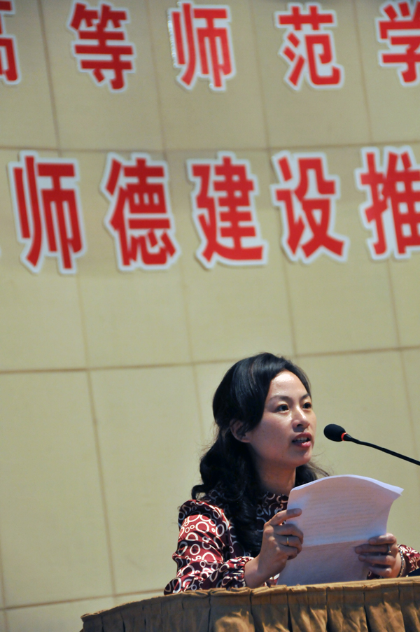 会上,都樾、贾真、沈佩菊三位同志代表教职工群体做了交流发言,虞福美同志代表工会宣读了《关于加强行风建设与师德建设的倡议书》。