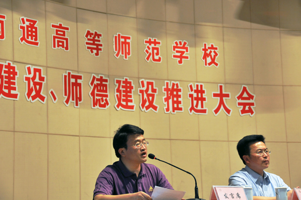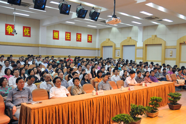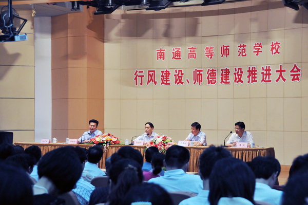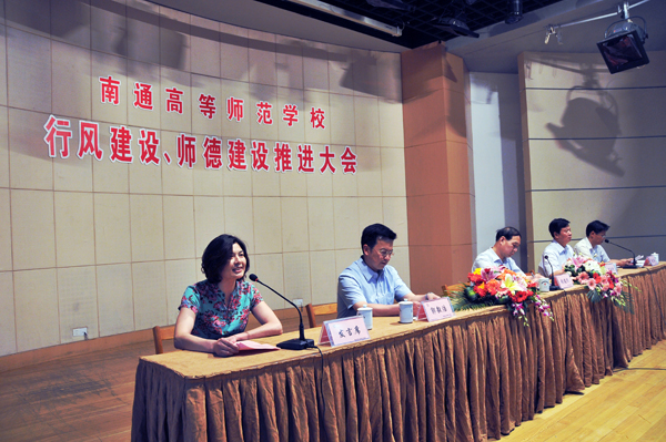 6月3日下午,我校在4楼报告厅召开“行风建设、师德建设推进会”,全体教职工参加了大会。会议由副校长、党委纪检委员潘健同志主持。党委书记、校长郭毅浩同志作主旨讲话。他认真剖析了目前我校行风建设、师德建设存在的主要问题,并就如何加强和改进我校的行风、师德建设进行了具体部署。