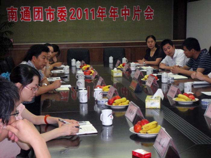 7月13日上午,南通团市委2011年高教系统年中工作交流会在我校召开。包括南通大学、航院、纺院、农院、紫琅、电大、商贸高专、如皋高师、南通高师等在内的十一所大中专院校和教育局团委负责同志参加会议并进行交流汇报。团市委赵新叶副书记主持会议并讲话。团市委学少部部长郭青、副部长陈晓红组织并参加了会议。