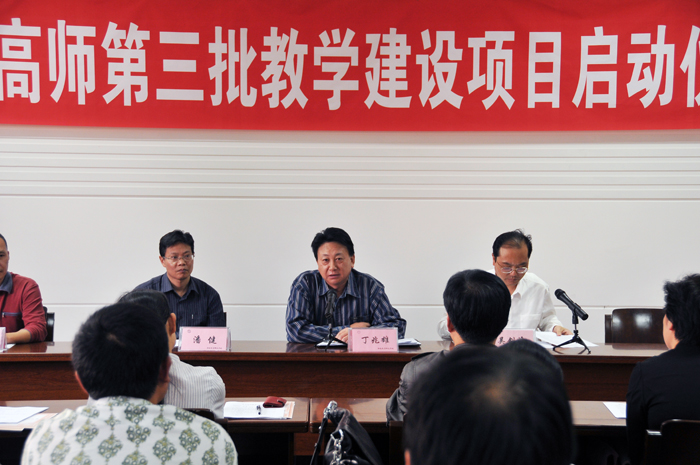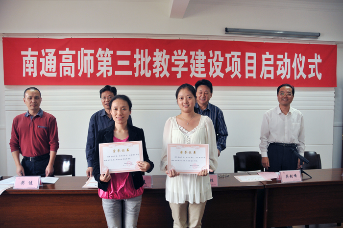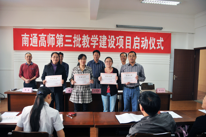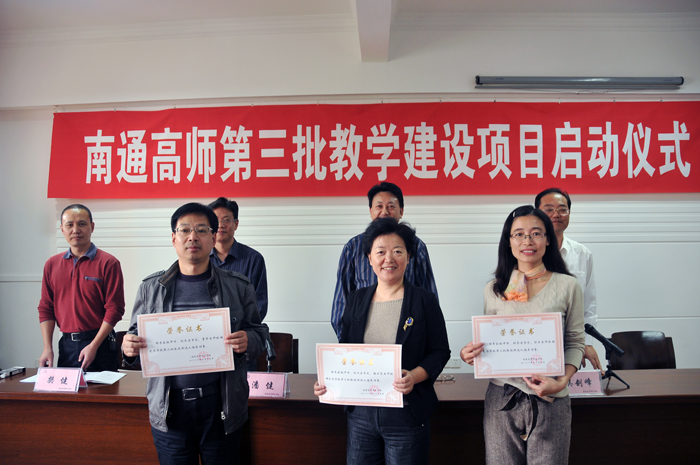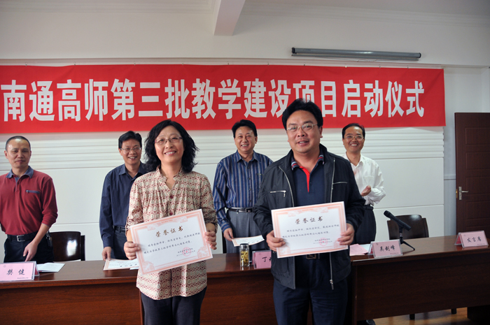 首先,潘建副校长宣读了学校第三批教学建设项目立项决定。接着,举行了第三批立项项目签约仪式。有关项目负责人在“目标责任书”上郑重签字;校长室领导和教务处负责人为其颁发荣誉证书。随后,有关项目负责人代表陆永来、曹军、姜道春、万文君等结合实际作了精彩的发言。