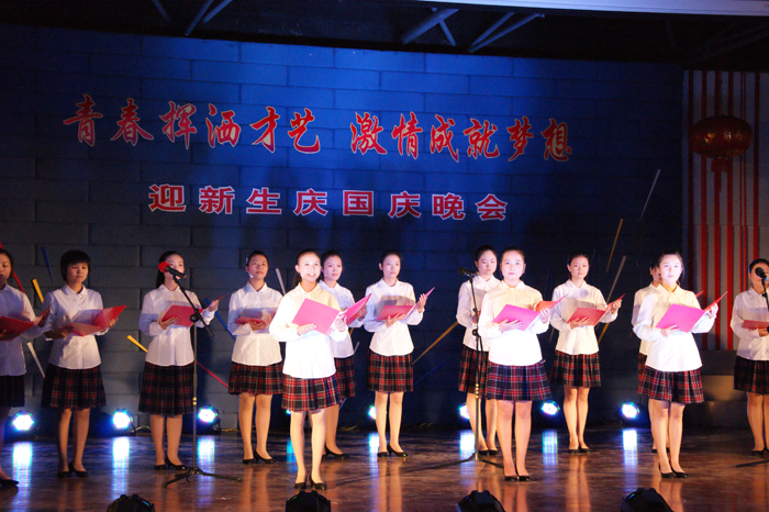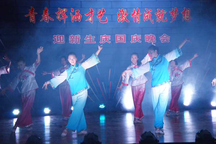 9月28日晚,海门校区在报告厅举办了“青春挥洒才艺,激情成就梦想”迎新生庆国庆晚会。舞台灯光绚丽多彩,悠扬乐曲激动人心,校区五百余名师生齐聚一堂,迎接2011级107位新同学,共同庆贺祖国62华诞,报告厅里一派节日的喜庆气氛。
