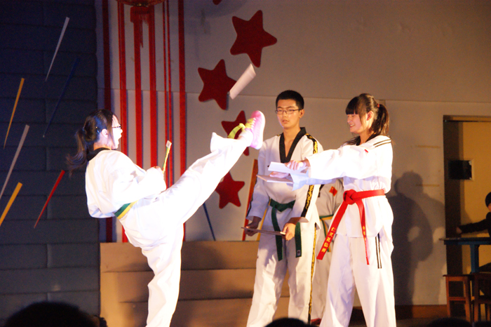 晚会在诗朗诵《青春万岁》的高亢激昂中拉开序幕,节目精彩纷呈,有舞蹈、歌曲、小品、乐器表演、跆拳道表演、花样轮滑表演等,穿插游戏互动环节,整场晚会高潮迭起,充分展示了高师学子的多才多艺,让新同学对将来的学习生活充满了期待。