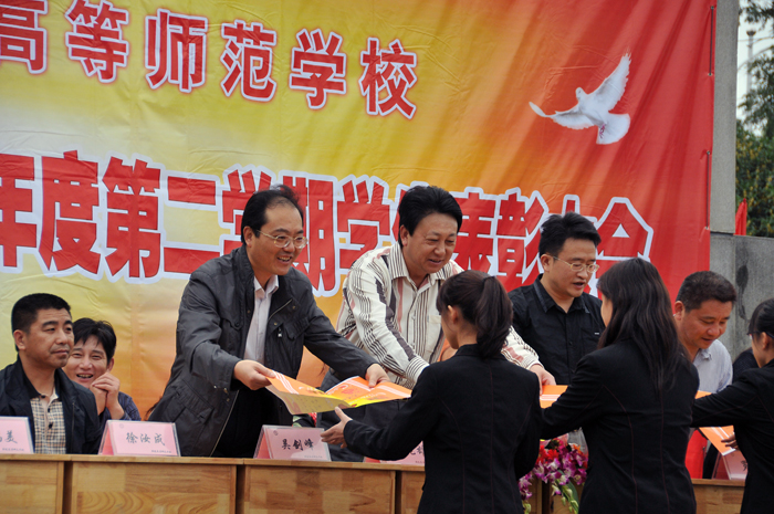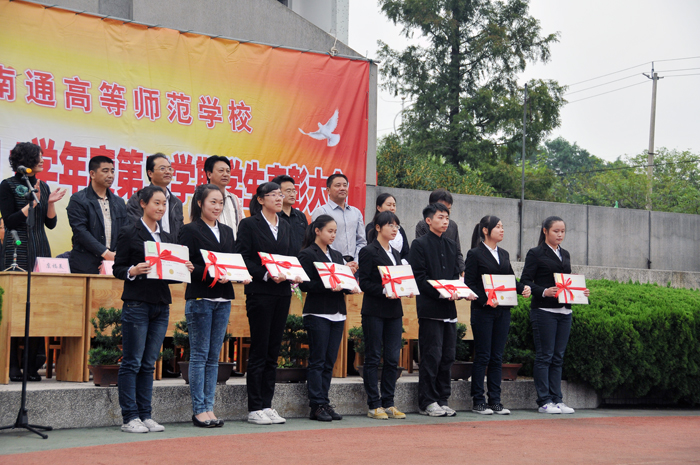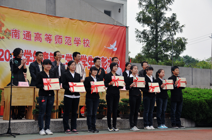 表彰大会由学工处副处长虞福美老师主持,校长助理都樾宣读了表彰决定。根据《南通高等师范学校学生表彰奖励条例》,授予小教文07(1)班等25个班“先进班级”称号;授予计算机应用09班等26个班“特色班级”称号;授予沈桂华等137名同学“优秀学生干部”称号;授予周红成等512名同学“三好学生”称号;授予蔡双铃等622名同学“单项优秀生”称号;授予徐一雯等55名同学一等奖学金;授予刘双琴等133名同学二等奖学金;授予茅惠红等242名同学三等奖学金。