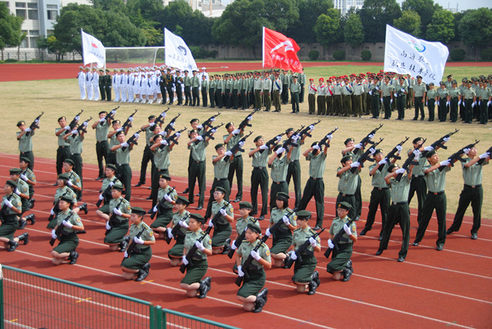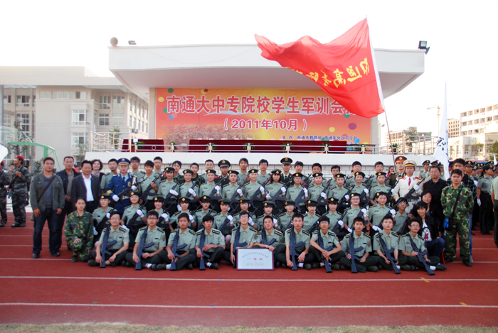 我校参加南通大中专院校学生军训会操获团体一等奖
