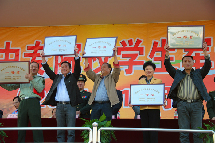 在10月15日举行的南通大中专院校学生军训会操中,我校2011级新生代表队喜获军训会操团体一等奖,“阅兵式和分列式”、“战斗精神队列歌曲”及“战地救护”等三个单项一等奖,“轻武器分解”和“国防民防知识技能竞赛”两个单项二等奖。
