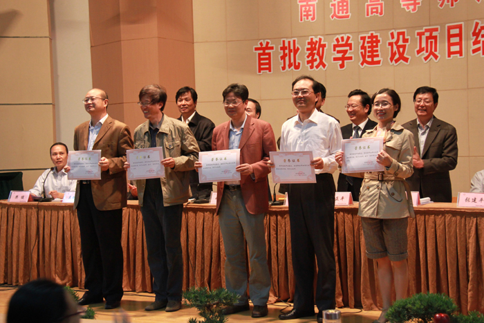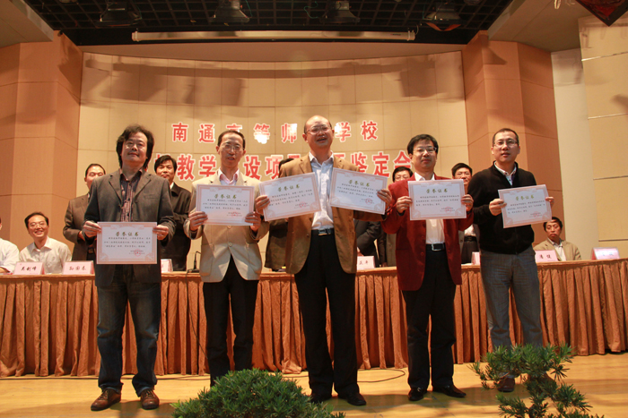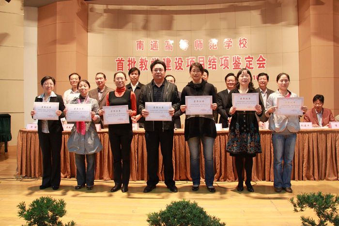 首先,由孙国春副校长宣读“关于首批教学建设项目评估验收结果的通知”(通高师校〔2011〕26号);共有22个项目如期达成建设目标,予以结项;由校领导和专家颁发荣誉证书,并授予相关称号。其中,小学教育专业(数科方向)被确定为校级品牌专业,小学教育专业(人文方向)和小学教育专业(美术方向)被分别确定为校级特色专业;物理(预科)、初等数学、弹唱等课程被确定为校级优秀课程;陈艺鸣、陈建、彭云被授予校级学科带头人称号,周淑平、梁文勤、戴建新、梁燕、贺斌、赵俊、施晓卫被授予校级骨干教师称号,徐敏、张蓓蕾、徐欢、徐培锋被授予校级教坛新秀称号;教授候选人潘健、吴剑峰已晋升教授,提前结项。此外,尚有1人未申报结项,2人暂缓结项;均可延缓1年再进行结项评估。经评估验收合格者,学校将按照《南通高等师范学校教学建设项目经费管理暂行办法》(通高师校[2009]35号)兑现资助、奖励。