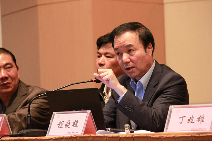 然后,丁兆雄校长对首批项目建设过程和成果进行了总结。他首先代表学校党政,对专家的辛勤劳动表示衷心感谢,对各项目组成员和培养对象所取得的成绩表示祝贺,并充分肯定了各部门卓有成效的工作。接着,他简要回顾了我校教学建设的探索历程。他说:我校在转型升格进程中,紧扣高校内涵发展的关键要素——特色专业、精品课程和名师培养,通过项目建设和评估,逐步架构起高校化教学平台。2009年以来,学校以《教学建设五年纲要》为起点,陆续推出了一系列管理制度和激励措施,研发了学校品牌(特色)专业、优秀课程、优秀教师和教学团队的建设评估标准和操作办法;聘请了高校专家组成评估组,对申报项目进行评审、指导;迄今已推出了3批教学建设项目,予以立项资助,包括3个重点专业、11项优秀课程、30位优秀教师。前两年学校共投入专项建设资金50多万元;各项目组开展了富有成效的建设工作。为保障项目建设质量,学校对教学建设项目实施目标管理和跟踪指导。期间,教务处作为项目管理的职能部门,积极组织技术咨询和交流活动,分阶段约请了程晓樵、陈家颐、丁锦宏等专家来校指导,开设专题讲座,提供具体的技术指导;组织各系部主任、教研室主任以及项目申报人召开了“教学建设项目咨询研讨会”;组织举办了“课程组示范观摩活动”,召开了“教学建设项目交流会”。这些活动在各系部的通力合作下有序推进,步步深入,为项目建设架构了平台,提供了支援。目前,首批立项项目经专家组评估鉴定已经顺利结项。