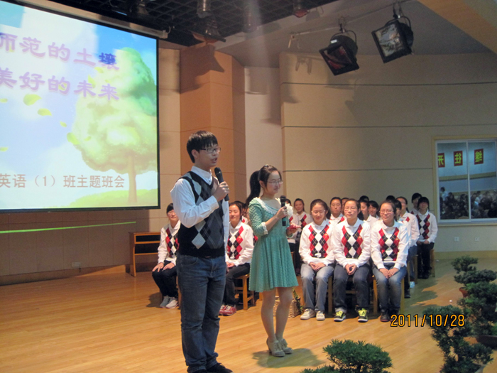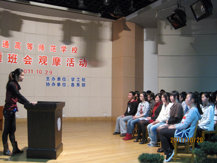为了提高班主任老师利用主题班会推进班级工作的实效,10月29日上午,学工处根据学期工作计划,在综合楼四楼报告厅向班主任老师和学生代表开放了四堂主题班会。四堂班会由各系部推荐,分别是人文系小教09(1)班梅云霞老师开设的《阅读视界》,数理系小教09(1)班刘加珍老师开设的《成长的足迹》,外语系英语09(1)班李放老师开设的《扎根师范的土壤,追寻美好的未来》和艺体系音乐10班丁苑老师开设的《真爱需要等待》。