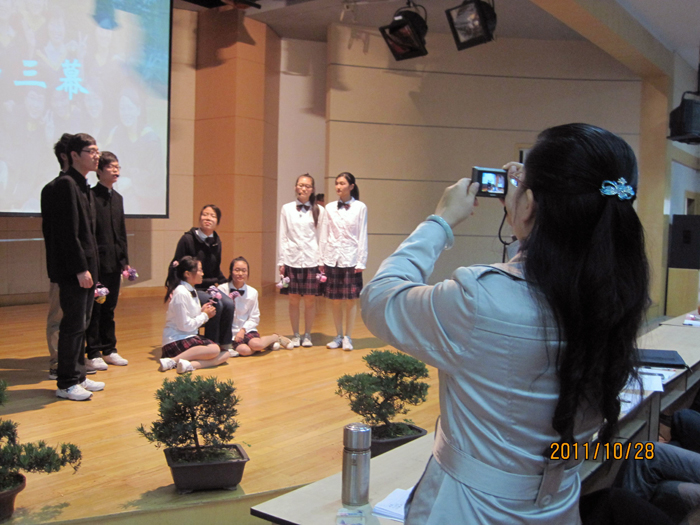 主题班会是以班级为单位的全体学生的会议或活动。它既是班主任对学生进行管理、引导和教育的重要途径,又是培养和展现学生自我管理能力,培养和增强学生主人翁意识的一种重要方式,同时也是处理、解决班级问题,开展各项活动的有效途径,更是学校德育的重要形式和实施载体。四堂班会主题鲜明,风格迥异,精彩纷呈,老师们和同学们在观摩中不仅了解了主题班会开设的模式和程序,更从中接受了教育和启示。